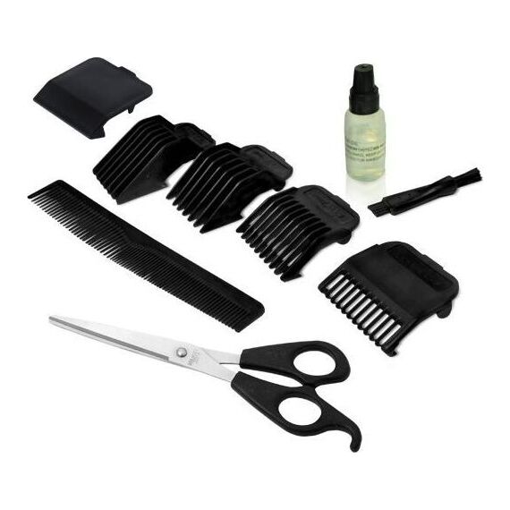 Мощность12 Вт Работа от сети Идеальная заточка лезвий Регулировка длины среза Производительный мотор Диапазон установок длины0-12 мм Удобная кнопка включения Комплект аксессуаров Ножницы Расческа Щеточка Масло 4 насадки(3,6,9,12 мм) и защитный колпачок