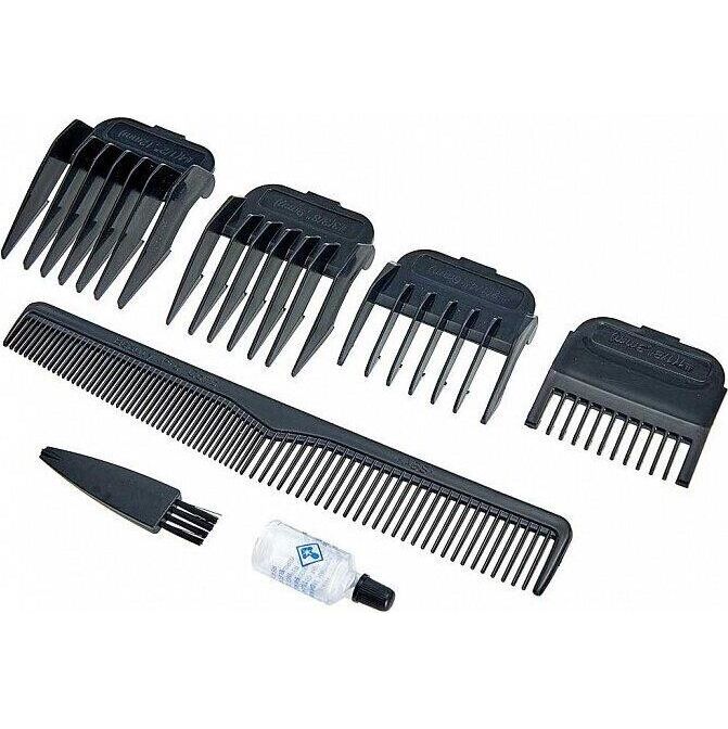 Номинальная потребляемая мощность 7 Вт, Машинка используется для стрижки натуральных волос и предназначена для бытового и аналогичного применения, Электропитание от сети 230 В ~ 50 Гц, Удобная конструкция корпуса, Цвет: синий, Регулировка длины срезаемых волос, 4 съемных гребня: 3, 6, 9, 12 мм, Лезвия из нержавеющей стали, Защитная крышка для лезвий, Щеточка для чистки лезвий, Масленка для смазки лезвий, Расческа, Петелька для подвешивания.