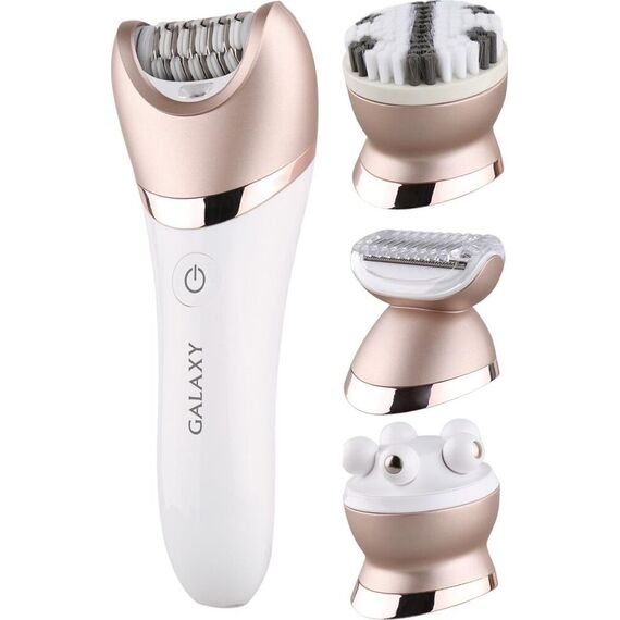 GALAXY GL 4960 прибор для ухода за кожей лица 2 скорости 45 минут непрерывной работы Защита от водяных брызг и струй с любого направления 4 насадки: массажная насадка насадка для эпиляции насадка для очищения лица насадка-бритва Работа от аккумулятора