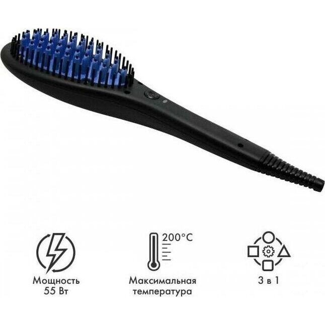 Полированные пластины с керамическим покрытием Расслабляющий массаж головы Керамический нагревательный элемент с быстрым стартом 3в1 Расческа, плойка и массажер Максимальная температура 200 °С Номинальная мощность 55 Вт 230 B ~ 50 Гц