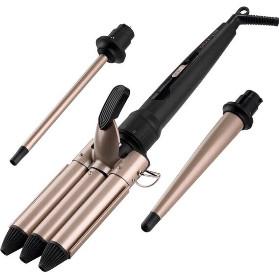 Мощность: - Насадка для завивки 25 Вт - Конусная насадка для завивки 40 Вт - Тройная насадка для завивки 100 Вт Максимальная температура 200 °C Нагревательный элемент с защитой от перегрева Три съемных насадки: - Насадка для завивки (диаметр 10 мм) - Конусная насадка для завивки (диаметр 15-25 мм) - Тройная насадка для завивки (диаметр 25 мм) Керамическое покрытие рабочих поверхностей Индикатор работы Длина шнура питания 180 см Подвесная петля