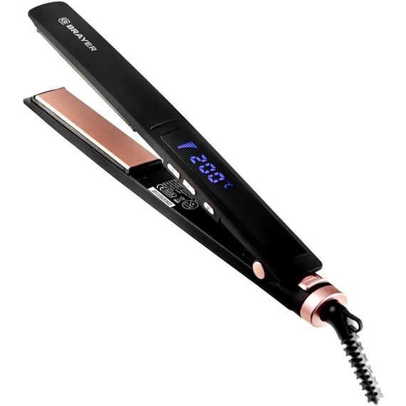 Электронная регулировка температуры от 110 до 230 °C Удлиненные нагревательные пластины с керамическим покрытием 25x110 мм PTC Heating – быстрый нагрев LED-дисплей для индикации температуры Автоотключение через 60 минут Мощность 52 Вт Электропитание 220-240 В, ~ 50/60 Гц