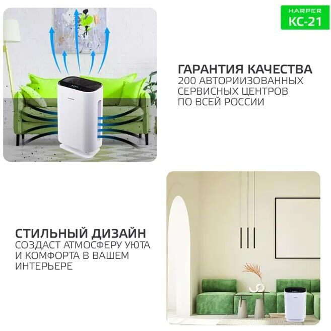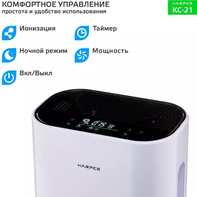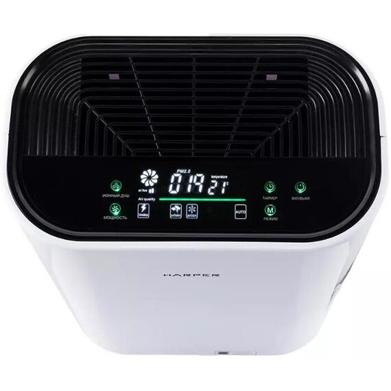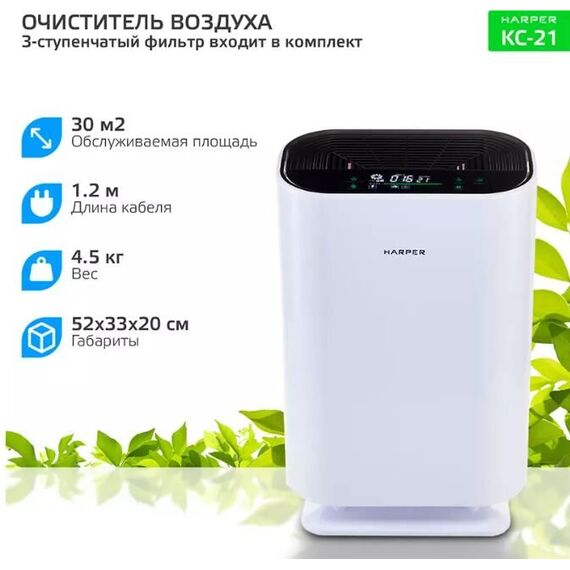 Обслуживаемая площадь: 15-30 м2. Показатель интенсивности нагнетания очищенного воздуха (PM CARD): 200 м³/ч. Температура (на дисплее): да. Потребляемая мощность: 35 Вт. Уровень шума: 30 дБ. Функция ионизации: да. Таймер: 12 ч. Метод управления: сенсорное. Пульт ДУ: да. Предварительный фильтр: да. HEPA-фильтр: да. Угольный фильтр: да. Функция напоминания замены фильтра: да. Ночной режим: да. Материал корпуса: пластик. Длина сетевого шнура: 1.2 м. Комплектация: Воздухоочиститель, руководство пользователя, гарантийный талон. Цвет: белый. Размеры (ШхВхГ): 330x520x200 мм. Вес: 4.5 кг.