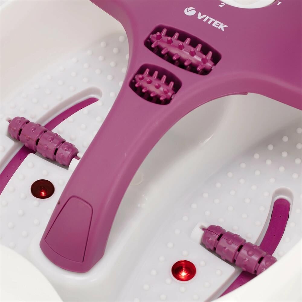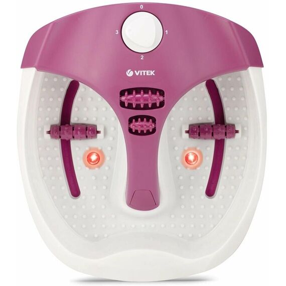 Массажная ванночка для ног. Виды массажа: вибрационный, пузырьковый. Количество режимов: 3 Количество насадок: 4, Инфракрасный излучатель, Подогрев дна. Цвет: белый/брусничный