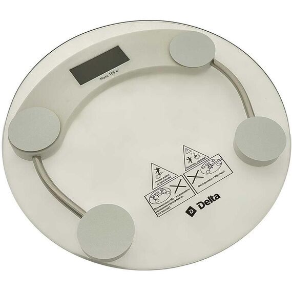 Весы напольные электронные. Платформа из закаленного прочного стекла, Диапазон измерений 3-180 кг, Интервал измерений 50 г, Номинальное напряжение 3 В, Индикатор перегрузки весов, Индикатор уровня заряда батареи, Автообнуление, Автоотключение, Выбор единицы измерения (килограмм/фунт), Противоскользящие ножки, Электропитание: батарея тип R03 AAA - 2 штуки, в комплекте.