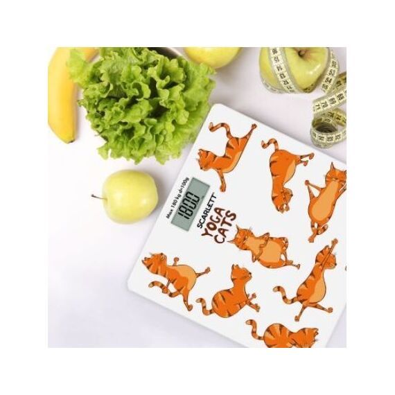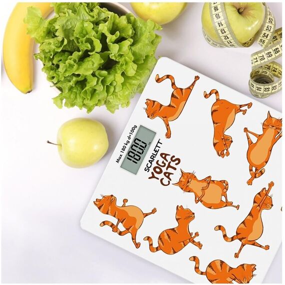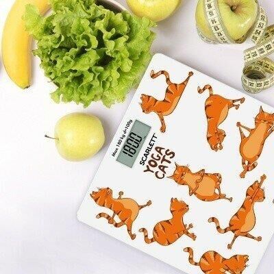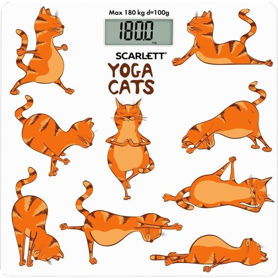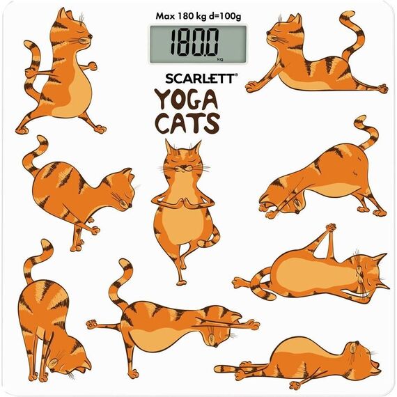 Тип: Электронные Материал корпуса: Стекло Максимальный вес, кг: 180 Цена деления, г: 100 Индикатор заряда батарейки: Да Индикатор перезагрузки: Да Автоматическое включение/выключение: Да Тип батарейки/B/шт.: CR2032/3B/1 Рисунок: Йога коты Прорезиненные ножки для устойчивости: Да Цвет: Белый