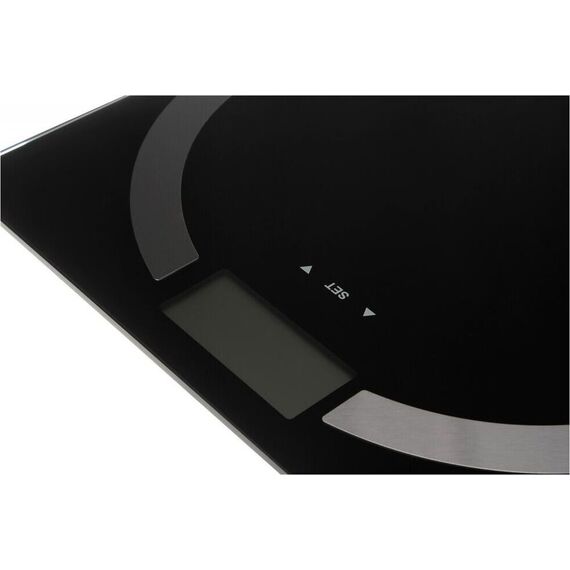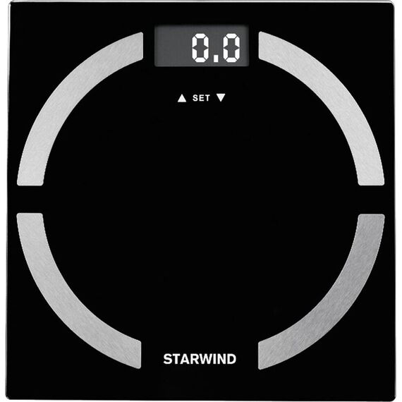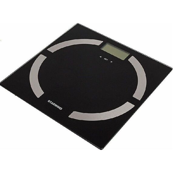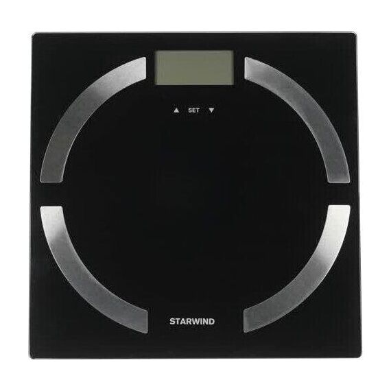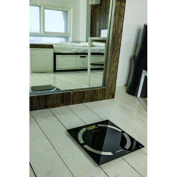 Весы напольные электронные, Максимальная нагрузка 180 кг, Цена деления 100 грамм, Диагностические весы, Определение доли воды, Определение доли жировой ткани, Определение доли мышечной ткани, Определение доли костной ткани, Расчет ИМТ, Автоматическое включение/отключение, Электропитание Питание 2 х AAA, Материал платформы - закаленное стекло, Цвет: черный, Размеры: 300 х 300 х 20 мм, Гарантия 12 мес.