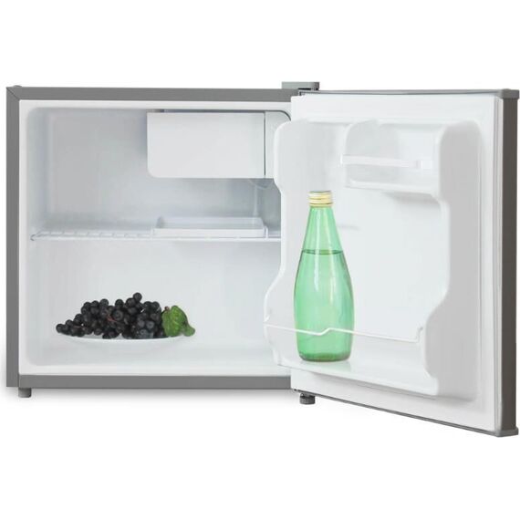 • габариты 49,3х47,4х44,6см • цвет Металлик • объем 41л • механическое управление • класс энергоэффективности А+ Компактный холодильник с отделением для быстрого охлаждения напитков * Климатический класс SN,N,ST,T * Суточный расход электроэнергии, при температуре окружающего воздуха 24°C, кВтч 0.3 * Возможность перевешивания двери * Температура в отделении для хранения свежих пищевых продуктов От 2 до 8 °C * Материал полок металл * Оттаивание холодильной камеры ручное *