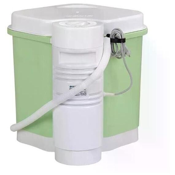 Стиральная машина, малогабаритная, активаторного типа. Максимальный объём закгрузки до 2кг. Управление механическое. Режим стирки реверсивный, таймер временем стирки до 8 мин. Количество режимов стирки 1. Без отжима.