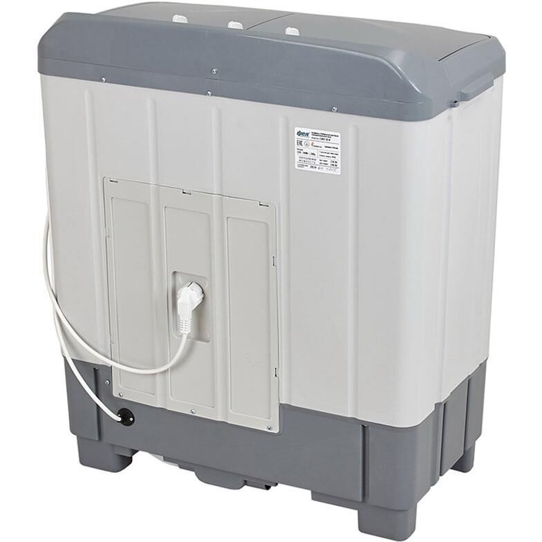 Стиральная машина, полуавтоматическая, активаторного типа с функцией отжима белья. Максимальна загрузка белья в режиме стирки 5 кг, в режиме отжима 4,5 кг. Механическое управление. Режимы стирки: нормальный; для деликатных тканей. Реверс. Таймер стирки до 15 мин, таймер отжима до 5 мин. Оттжим макс. 1300 об./мин. Сливной насос.