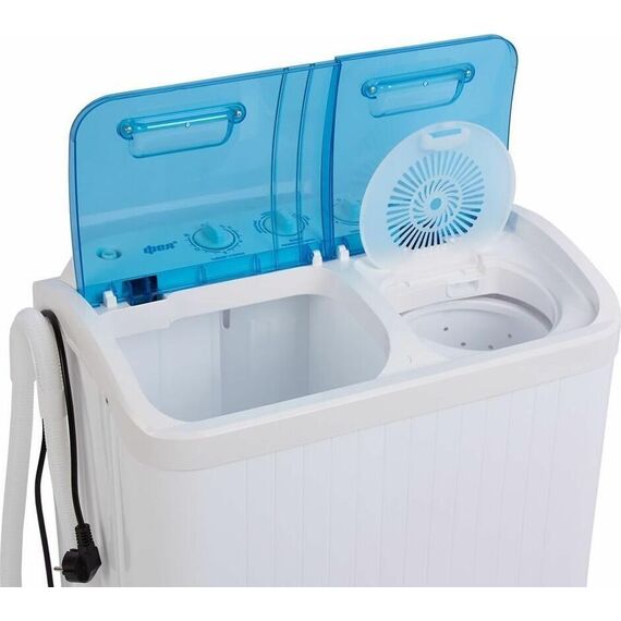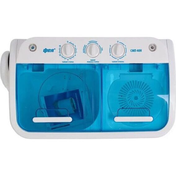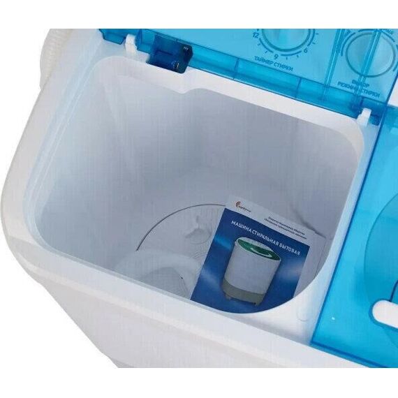 Стиральная машина, малогабаритная, активаторного типа. Максимальный объ м закгрузки до 2кг. Управление механическое. Режим стирки реверсивный, таймер временем стирки до 8 мин. Количество режимов стирки 1. Без отжима.