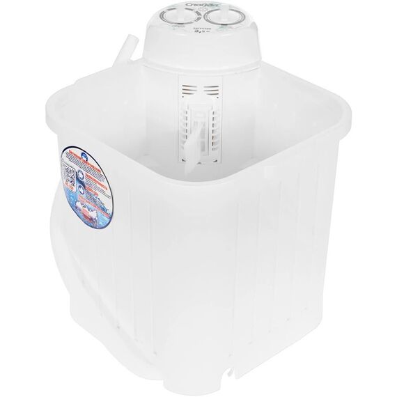 (ШхГхВ) 48х48х52,5см.Цвет белый.Мощность 180 Вт. Загрузка сухого белья в бак до 3.5 кг. Крышка-тазик емкостью 12л. 3 режима работы. Реверс. Фильтр для сбора ворса и пуха. Таймер стирки до 15мин.Материал корпуса: полипропилен.Активатор нового поколения.Класс безопасности IP54.Максимальная потребляемая мощность (Вт)245.Режим работы Обычная стирка,Бережная стирка,Интенсивная стирка.
