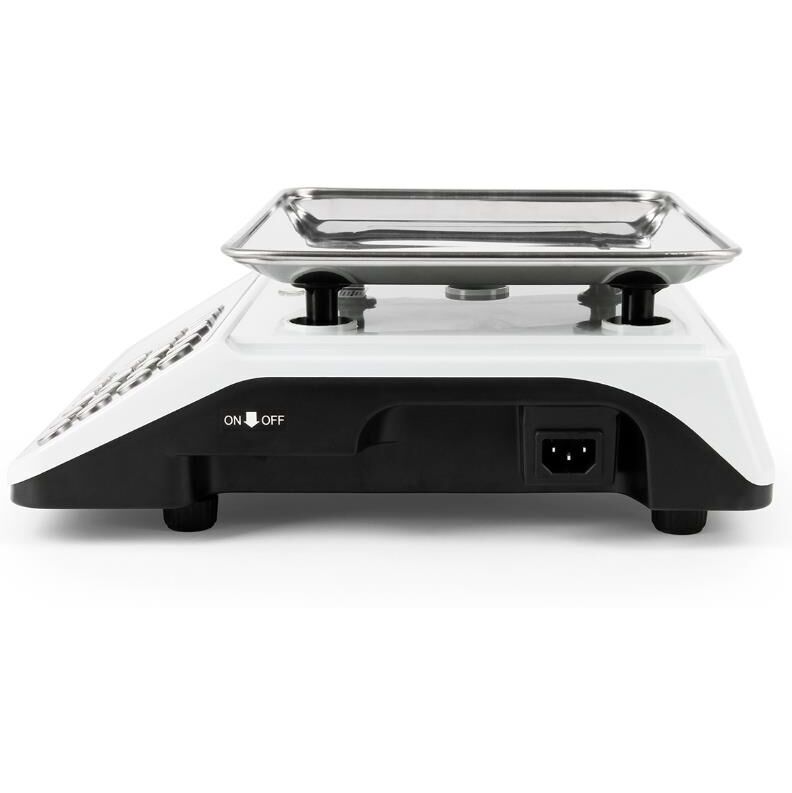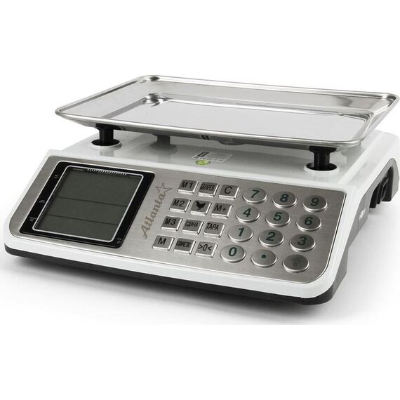 Большой ЖК-дисплей c регулируемой подсветкой Второй дисплей с обратной стороны Удобные регулируемые ножки Брызгозащищённая панель из нержавеющей стали Предел взвешивания 40 кг Точность взвешивания 5 г Съемная платформа 33 x 23 см Функция сброса веса тары Расчёт веса для подвижных объектов Расчёт стоимости Память на цены 3 товаров Суммирует до 99 покупок Функция подсчета сдачи Подсчёт количества Автономная работа до 20 часов Индикатор уровня заряда аккумулятора Функция автоматического отключения для энергосбережения Средний класса точности (III) Работает от сети и аккумулятора.
