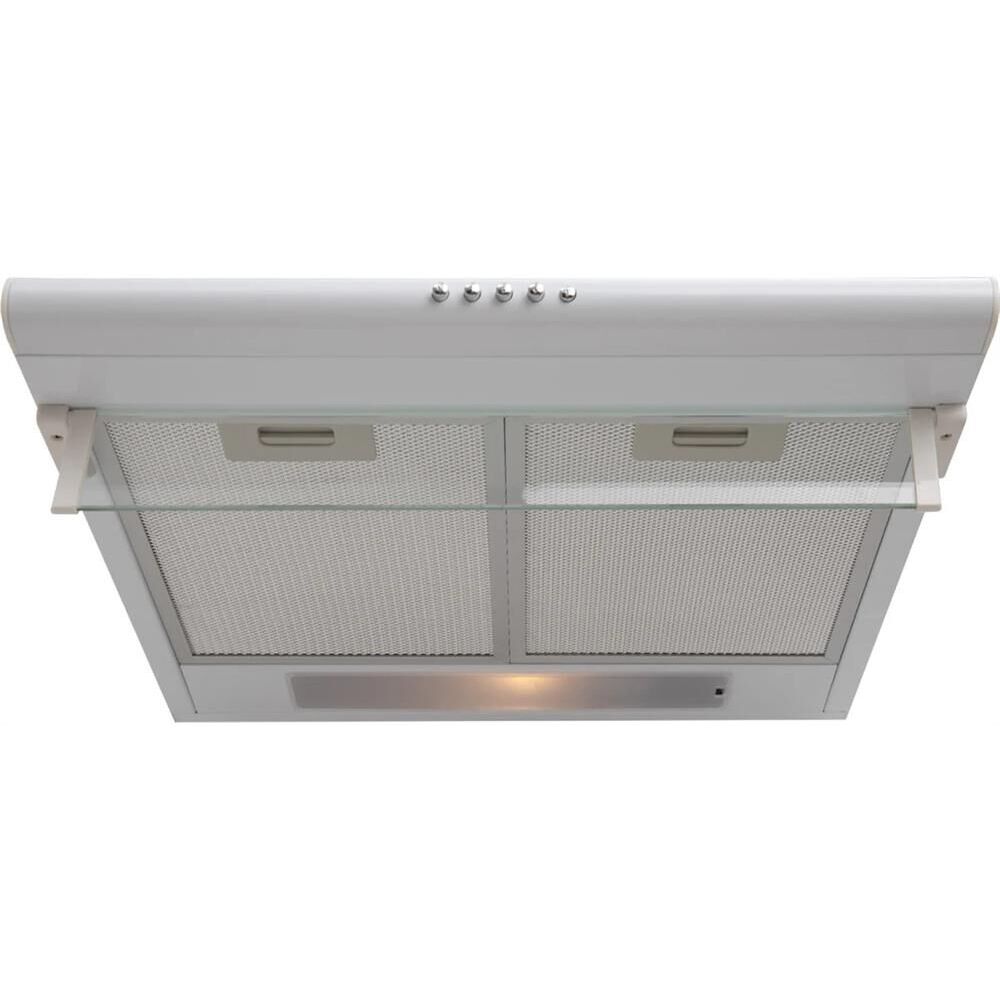 Белый, Ширина 500мм, Воздушный поток 400 м/ч, стандартная лампа, Мощность освещения 1x28 Вт, 2 aлюминиевыйх фильтра, необходимое количество угольных фильтров - 2 шт, Модель угольного фильтра VU-02, Уровень шума 44 дБ, управление -кнопочное, Вес нетто 5,3 кг, Турция