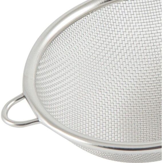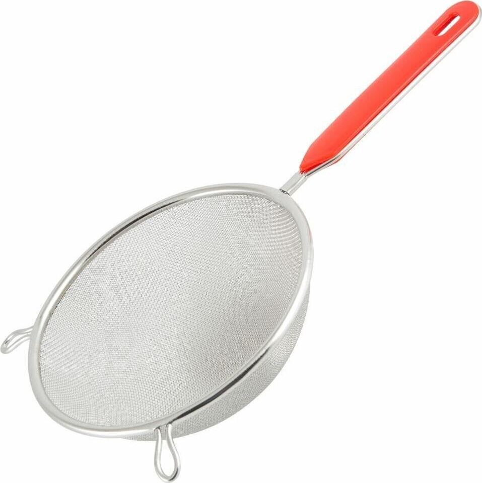 Диаметр: 12 см Размер ячейки: 1мм Длинная ручка Материал: нержавеющая сталь (SS201), пластмасса Упаковка: хенгтег, пакет.