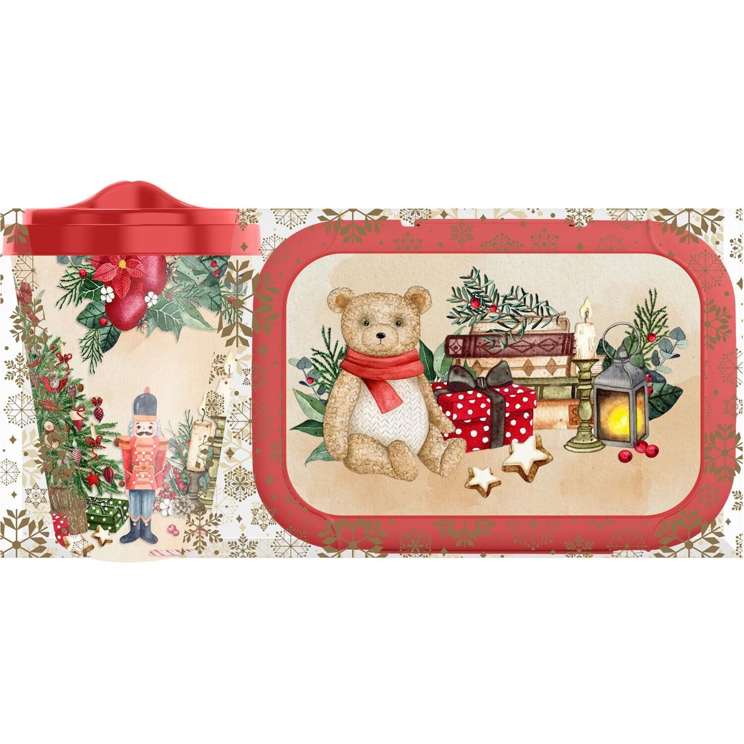 Емкость для сыпучих продуктов HOMVER Набор с декором "Игрушки": стакан с крышкой 420мл + ланч-бокс 0,85л (красный) 223137106/03