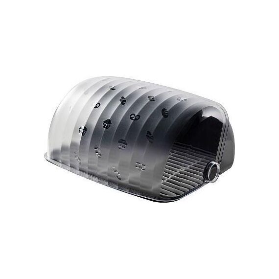 Материал: Полистирол, полипропилен Размер: 34,52 х 27,29 х 16,41 см Индивидуальная упаковка: термоусадка+стикер Цвет: прозрачный, черный. Поверхность: глянцевая Изделие: - решетка-вкладыш предохраняет сдобу от налипания крошек и позволяет воздуху циркулировать под содержимым, что значительно улучшает качество его хранения; - прозрачная крышка с рисунком представляет собой подвижный элемент, который бесшумно сдвигается назад, экономя место; - конструкция легко разбирается для ухода; - выдерживает многократные открывания-закрывания; - мойка в посудомоечной запрещена.