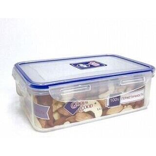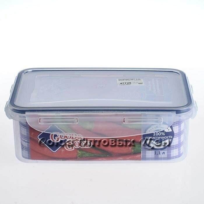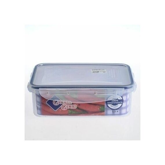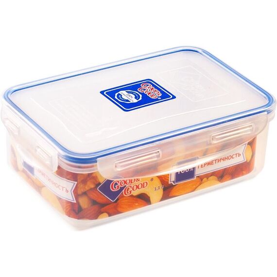 Контейнер пищевой герметичный объемом 1,1л (размер 205х135х67мм) Good&Good изготовлен из высококачественного полипропилена, который не содержит Бисфенол-А. Контейнер герметичный использует блокирующие клипсы с четырех сторон и силиконовый уплотнитель, что делает его 100% герметичным. Контейнер для СВЧ обеспечивает длительное сохранение свежести продуктов. Контейнер для еды Good&Good предназначен для хранения, заморозки и транспортировки различных продуктов, в том числе и жидкости. Пластиковый контейнер с крышкой можно использовать как ланч-бокс для дома, в офисе, в школе и на природе. Контейнер для хранения продуктов можно использовать в СВЧ Печи. Герметичный контейнер подходит для холодильных и морозильных камер. Пластиковый контейнер не деформируется при мытье в посудомоечной машине. Температурные режимы для использования в СВЧ, морозильной камере: +125 -24.