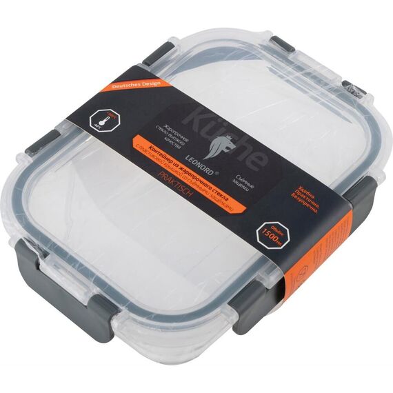 Контейнер LEONORD Контейнер, Praktisch, объем: 1500 мл, из жаропрочного стекла с пластик крышкой со съёмными защёлками (106072)