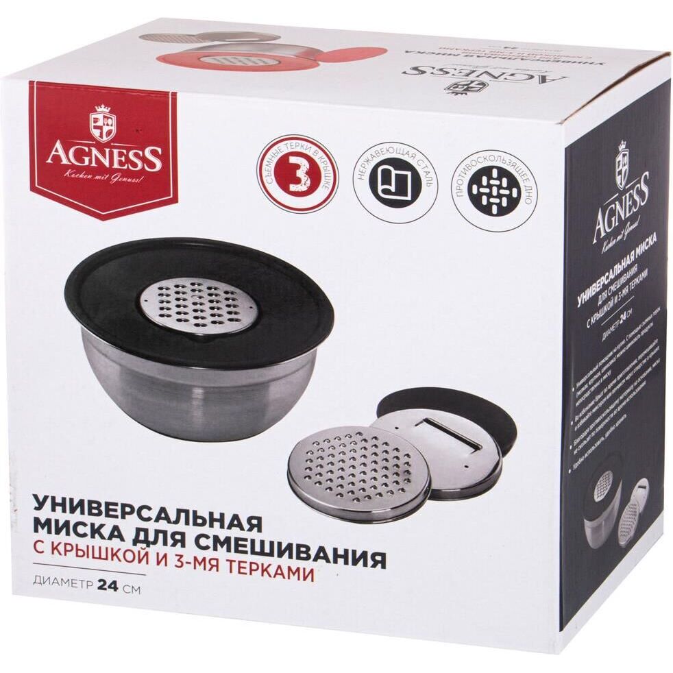 Миска AGNESS 880-128 6в1 с крышкой и 3-мя терками 24см 2,25л