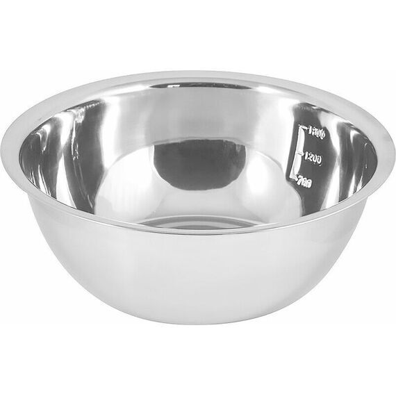 Миска из нержавеющей стали с расширенными краями Толщина - 0,3 мм Одинарное дно Внутри и снаружи - зеркальная полировка Упаковка: стикер/пакет диаметр 19 см *5,5 см (высота) литраж 1 л