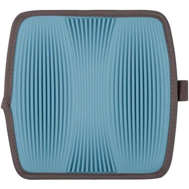 Материал: высококачественный силикон, ткань. Цвет: голубой. Может использоваться как коврик для сушки посуды, как коврик под горячее и как прихватка. Стильный дизайн идеально украсит Вашу кухню. С обратной стороны коврик имеет тканевую подложку, что позволяет удобно и крепко удерживать посуду. Не содержит бисфенол А и фталаты. Вес 0.14 кг