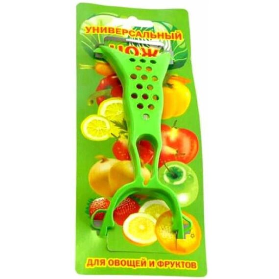 Материал: ручка-терка — пищевой пластик; лезвие — нержавеющая сталь; Тип лезвия: плавающее. Цвет: в ассортименте Индивидуальная упаковка: картонная подложка Универсальный нож для овощей и фруктов специально разработан для легкой очистки и нарезки. Благодаря своей функциональности, он намного быстрее и эффективнее очищает и нарезает фрукты и овощи. Например, одним ножом Вы можете очистить морковку, а другим нарезать ее для салата по-корейски. Быстро нашинковать капусту, очистить огурец или яблоко. Этот нож справится со любыми задачами.