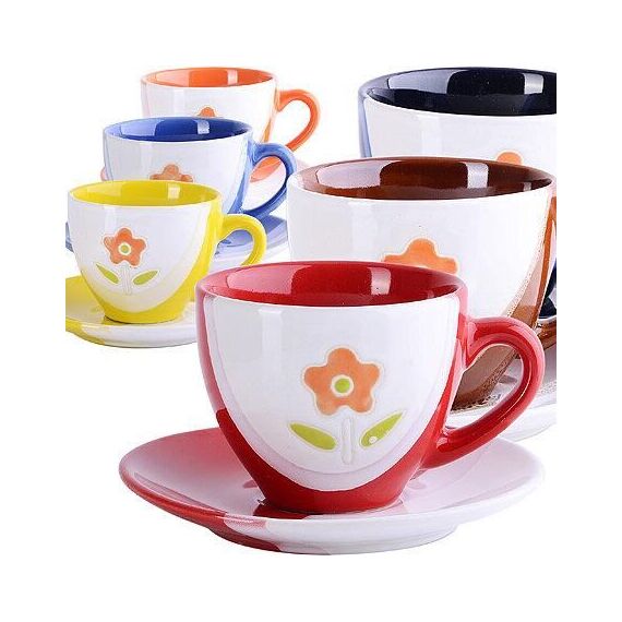 Материал: керамика Цвет: оранжевый, красный, синий. Рисунок: цветок. Объем чашки: 250 мл Диаметр чашки: 8,5 см, высота: 7 см. Диаметр блюдца: 13,7 см. Размер упаковки: 35,5 х 20,8 х 9,5 см Упаковка: картонная коробка Вес: 2,800 кг Страна производитель: Китай
