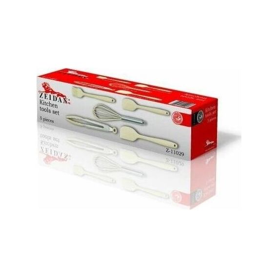 Набор кухонных принадлежностей ZEIDAN Z-11029 5 предметов , Набор кухонных принадлежностей, 5 предметов, материал - силикон (кулинарная кисть -21,5 см, венчик для взбивания - 26 см, щипцы - 27,5 см, лопатка для выпечки ( большая ) - 27,5 см, лопатка для выпечки ( малая ) - 21,5 см.