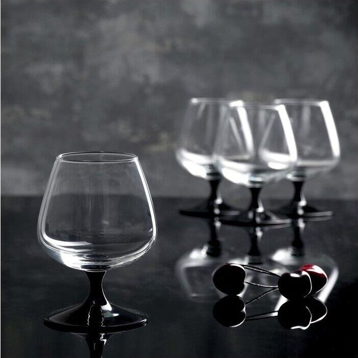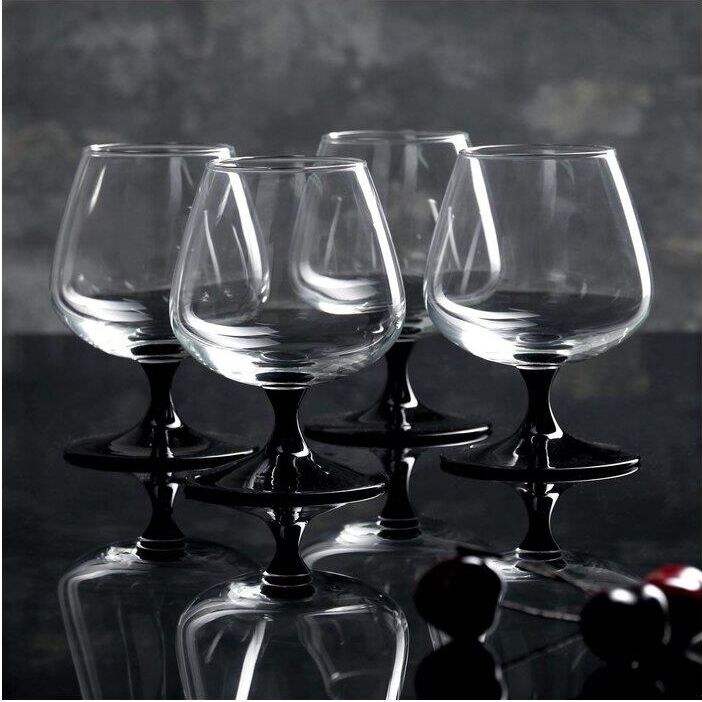 Набор фужеров для коньяка 410мл Domino J3030. В наборе 4 фужера из прозрачного стекла на черной ножке.