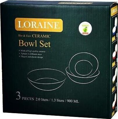 Набор салатников 3 пр LR (х6). Материал: керамика. Размер: 1: 26,5 х 26,5 х 6,5 см. 2: 22,5 х 22,5 х 6 см. 3: 20 х 20 х 5,5 см. Объем: 1: 2000 мл. 2: 1300 мл. 3: 900 мл. Размер упаковки: 27,5 х 27 х 8,2 см. Упаковка: коробка. Вес: 2,5 кг. Страна производитель: Китай.