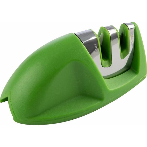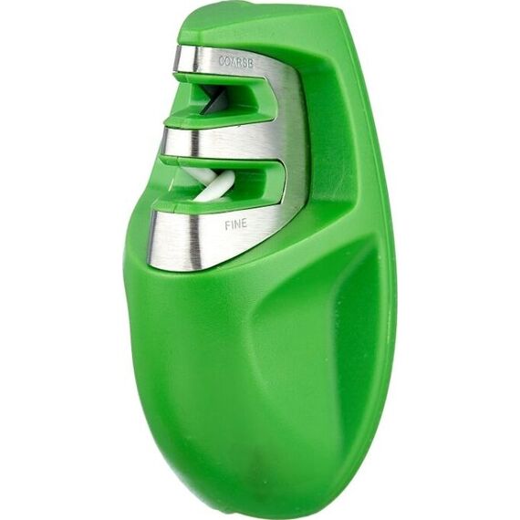 Ножеточка KS-3 Размер: 10*5*4,8см Материал: пластик, металл, керамика. Упаковка: одинарный блистер Настольная точилка для ножей с двумя рабочими зонами применяется для всех видов металлических ножей - от кухонных до туристических. Одна зона: металлические стержни (для первичной заточки), вторая зона: керамические стержни (для доводки лезвия ножа). Эргономична, удобно держать в руке и безопасна в эксплуатации.