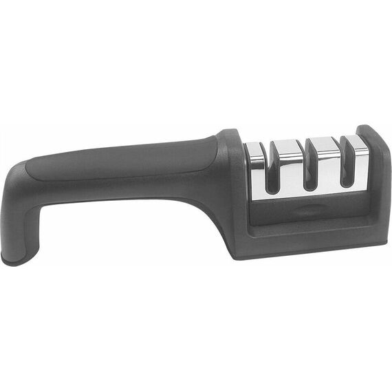 Точилка для ножей ZEIDAN Z-11053 , Точилка для ножей, 3 уровня заточки. Корпус из высококачественного пластика. Затачивающие элементы из вольфрамового сплава и керамики. Резиновое покрытие нижней части предотвращает от скольжения. Подарочная упаковка.