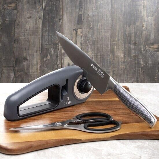 Точилка для ножей Dover 23.5x9x5.5 см Подходит для всех кухонных ножей и для заточки ножниц. Сменяемые элементы для заточки различных типов ножей включая ножи с односторонней заточкой и ножи для нарезки хлеба. Очищайте точило влажной тканью либо мягкой