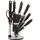 Набор кухонных ножей на подставке Высококачественная сталь 9 предметов Топорик кухонный 17 см Нож поварской 20 см Нож хлебный 20 см Нож универсальный 12,5 см Нож овощной 9 см Точилка Ножницы Овощечистка с керамическим лезвием Острая режущая кромка Практичная подставка Легкая заточка Удобные ручки Восхитительный дизайн