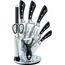 Набор кухонных ножей на подставке. Высококачественная сталь .9 предметов. Топорик кухонный 16см. Нож поварской 20см .Нож хлебный 20см. Нож для резки 12см. Нож овощной 9см .Точилка Ножницы. Овощечистка с керамическим лезвием. Острая режущая кромка. Легкая заточка .Удобные ручки. Восхитительный дизайн