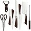 Набор кухонных ножей на подставке Высококачественная сталь 9 предметов: Топорик кухонный 16см, Нож поварской 20см, Нож хлебный 20см, Нож для резки 12см, Нож овощной 9см, Точилка, Ножницы Овощечистка с керамическим лезвиемОстрая режущая кромка Легкая заточка Удобные ручки Восхитительный дизайн Практичная подставка