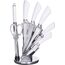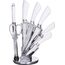 Набор ножей 8 пр МВ (х6). Материал лезвий: нержавеющая сталь. Материал ручек: нержавеющая сталь. Материал подставки: акрил. Хлебный нож: 33,5 см (лезвие 20 см). Поварской нож: 33,5 см (лезвие 20 см). Разделочный нож: 33,5 см (лезвие 20 см). Универсальный нож: 23 см (лезвие 12 см). Нож для очистки: 20,5 см (лезвие 8 см). Длина ножниц: 18,5 см. Длина мусата: 30 см. Размер упаковки: 16,5 х 16,5 х 37,5 см.