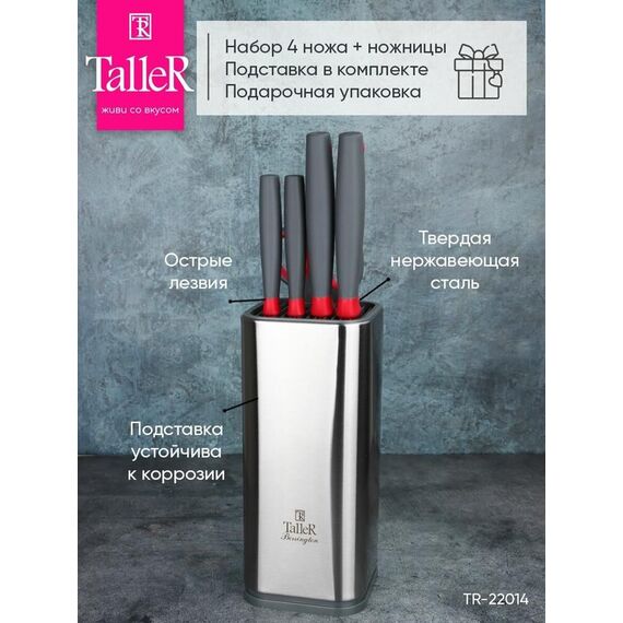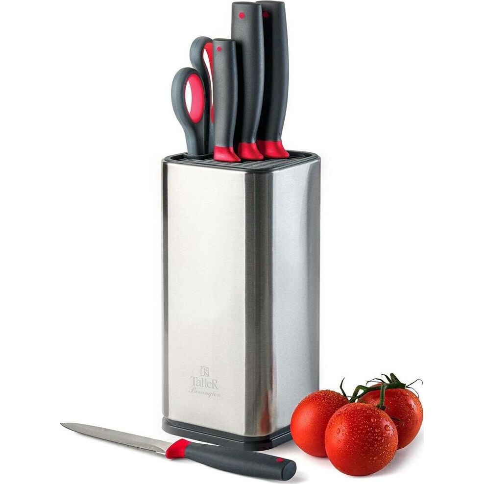 Набор ножей "Беррингтон", 6 пр. Подставка выполнена из нержавеющей стали, лезвия ножей сделаны из коррозионностойкой стали 420S45. Состав набора: нож поварской 20,0 см — 1шт., нож для хлеба 20,0 см — 1 шт., нож универсальный 12,0 см — 1 шт, нож для чистк