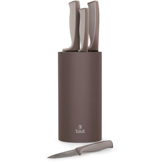 Набор ножей 5пр. Состав: Нож поварской 20см. Лезвие: сталь 3Cr13, толщина 1,8мм. Нож сантоку 15см. Лезвие: сталь 3Cr13, толщина 1,8мм. Нож универсальный 12,5см. Лезвие: сталь 3Cr13, толщина 1,5мм. Нож для чистки 9см. Лезвие: сталь 3Cr13, толщина 1,5мм. Рукоятка: пластик. Универсальная подставка. Упаковка: картонная коробка. Фасовка 6