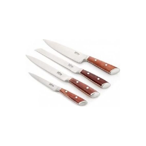 LR05-11 LARA Набор ножей 4шт: разд, универ, хлеб, пов.дер ручки,яп. сталь 420J2,лез-13,20,20,20см.