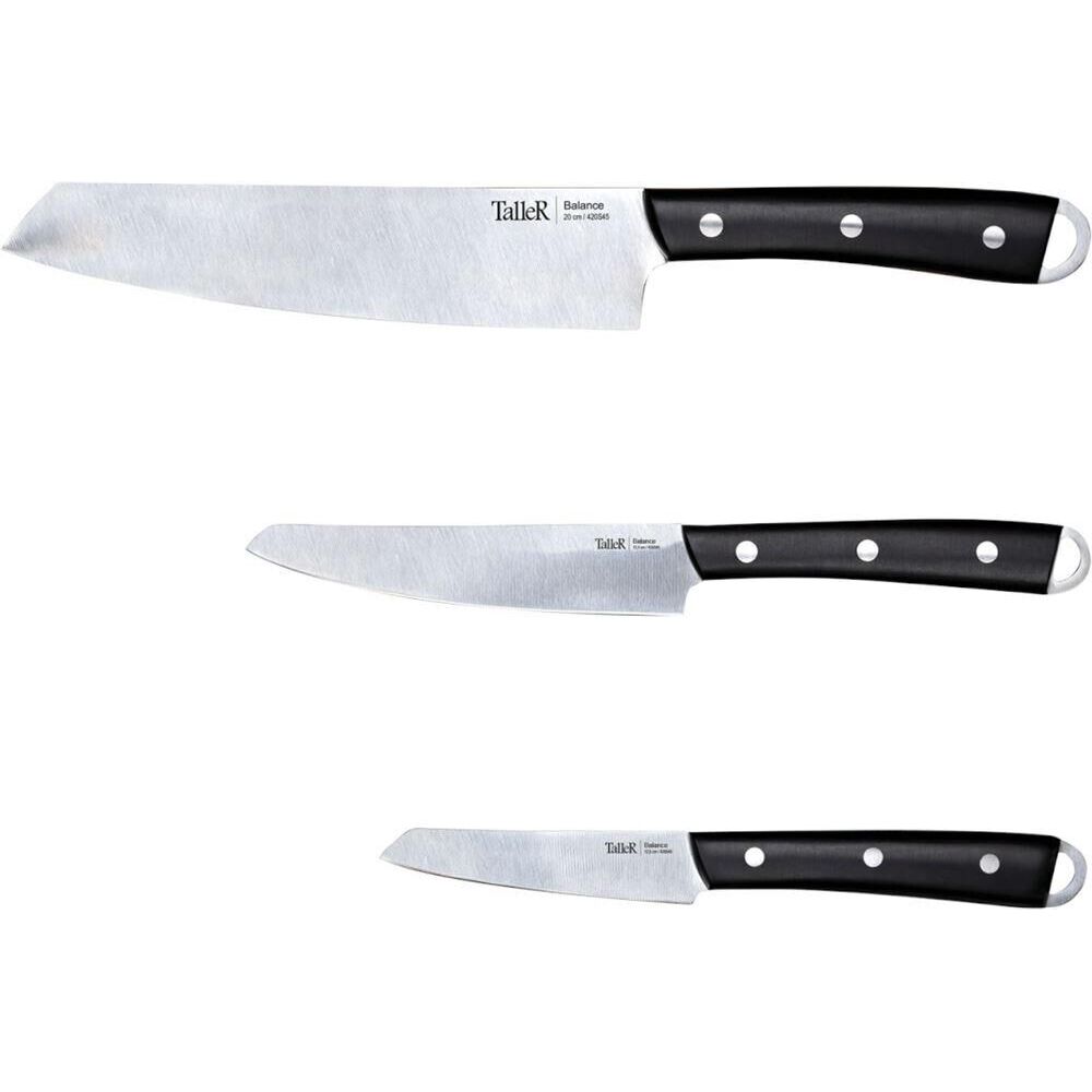 Набор ножей Balance, 3 пр. Материал - нержавеющая сталь, ручки из пластика Состав:нож поварской – 1 шт, 20см; нож универсальный – 1 шт, 12,5см; нож для чистки – 1 шт, 9 см Рекомендуется ручная мойка Упаковка - коробка