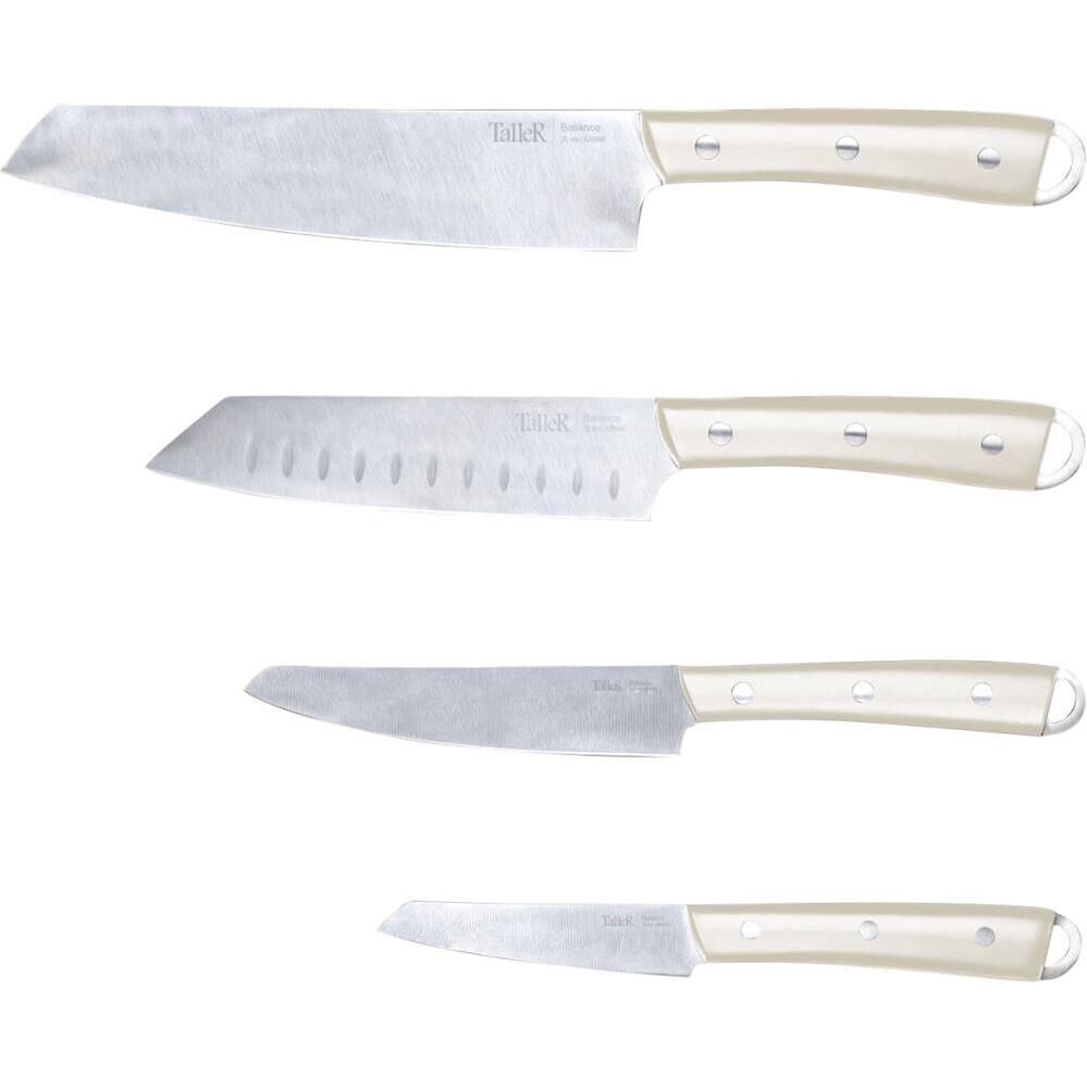 Набор ножей Balance, 4 пр. Материал - нержавеющая сталь, ручки из пластика Состав: нож поварской – 1 шт, 20 см; нож сантоку - 1 шт, 15 см; нож универсальный – 1 шт, 12,5см; нож для чистки – 1 шт, 9 см Рекомендуется ручная мойка Упаковка - коробка