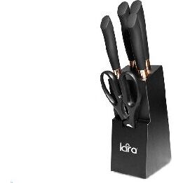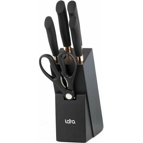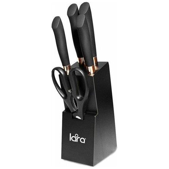 LR05-55 LARA Набор ножей 6 предметов: Подставка (сосна) +4 ножа (Soft touch, мед. больстер) +ножницы
