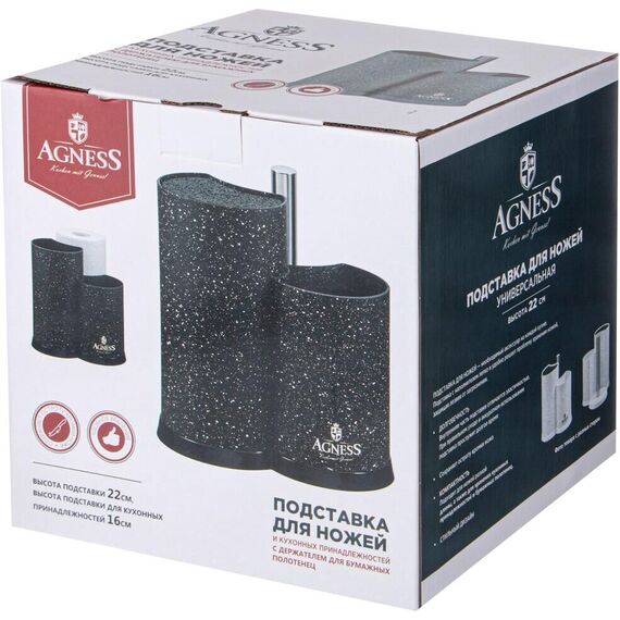 Подставка для ножей AGNESS 911-750 универсальная с держателем для полотенец