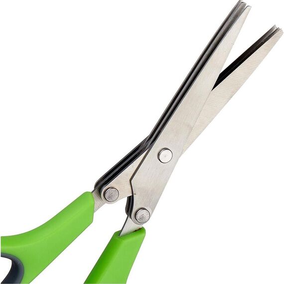 Длина ножниц: 19 см 3 лезвия толщина стали 1,00 мм Особая конструкция из трех параллельных рядов лезвий позволяет быстро нарезать зелень. Материал: нерж сталь, пластик Упаковка: полиэтил пакет + картонный подвес