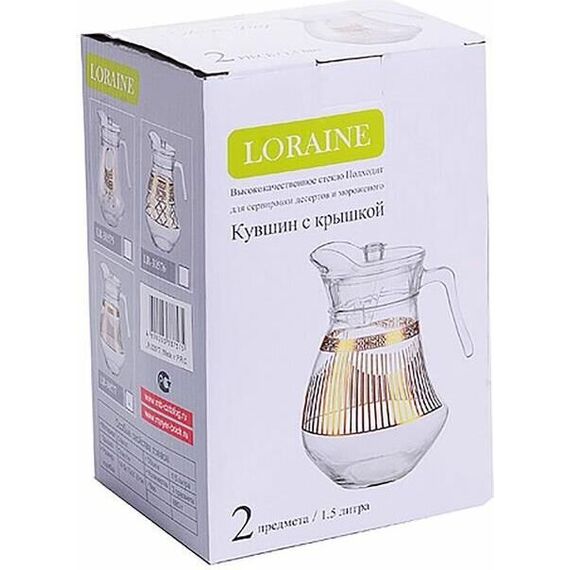 Кувшин LORAINE, выполнен из высококачественного стекла и пластика. Удобная форма носика и крышка позволяет защитить ваш напиток от попадания излишних запахов в ваш напиток. Подходит для: соков,морсов,компотов и любых интересных для Вас напитков. Кувшин так же имеет удобную ручку,которая упрощает использование его. Поверхность гладкая с золотистым рисунком .