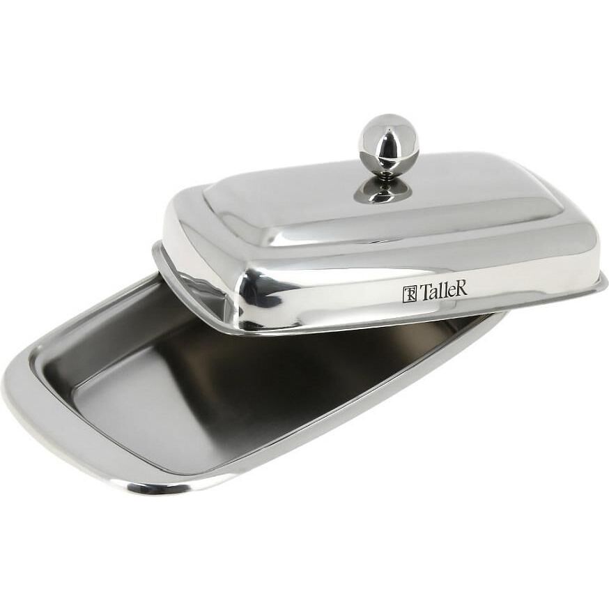 Масленка «Холли». Толщина стенок 0,5 мм. Объем 250г. Удобная ручка. Закругленные безопасные края. Полировка внешняя - зеркальная, внутренняя - матовая. Пригодна для мойки в посудомоечной машине. Упаковка - цветная коробка