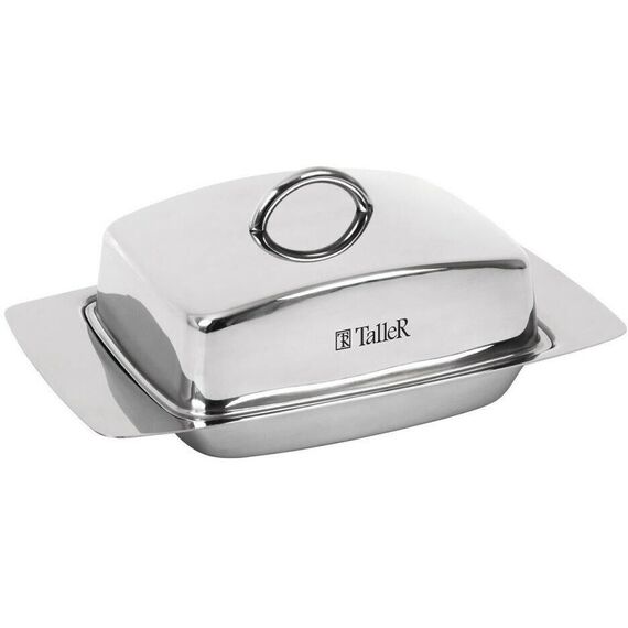 Масленка «Адела». Толщина стенок 0,5 мм. Объем 170 г. Удобная ручка. Закругленные безопасные края. Полировка внешняя - зеркальная, внутренняя - матовая. Пригодна для мойки в посудомоечной машине.