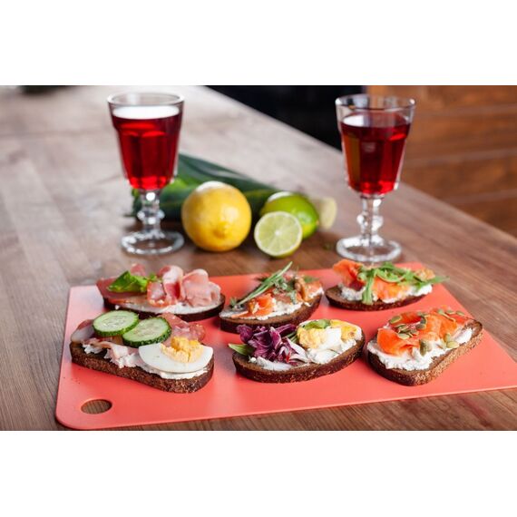 Доска разделочная HELSINKI прямоугольная гибкая XL 400х285х2 мм шоколадный мокко Предназначены для всех видов продуктов: мяса, рыбы, овощей, фруктов и других. На гибкой доске можно порезать продукты, согнуть ее и переложить их в блюдо или кастрюлю, не рассыпав содержимое. Доска не впитывает запахи, поэтому вы можете резать продукты с ярко выраженными ароматами и быть спокойным, что он не смешается с запахами других продуктов. Экономит пространство на кухне благодаря толщине и наличию дырочки для подвеса на краю.Удобное отверстие на краю доски позволит Мягкий, гибкий и прочный материал сохраняет ножи острыми, в том числе керамические. Изготовлены из безопасного пищевого пластика, который не содержит бисфенол А. Легко моются и прослужат долгие годы благодаря износостойкости материала и устойчивости к порезам. Текстура поверхности предотвращает образование царапин и скольжение. Можно мыть в посудомоечной машине.